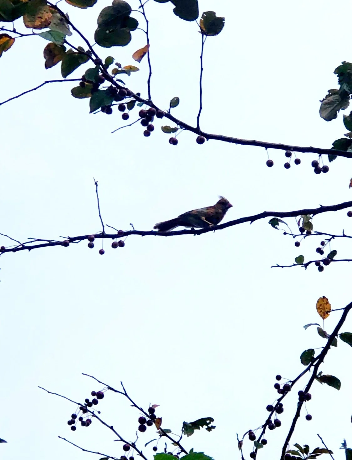 A Visitor Sep 4 Written By Rene Terry Mucci A Cardinal in a tree means You’re thinking of me. Rene Terry Mucci