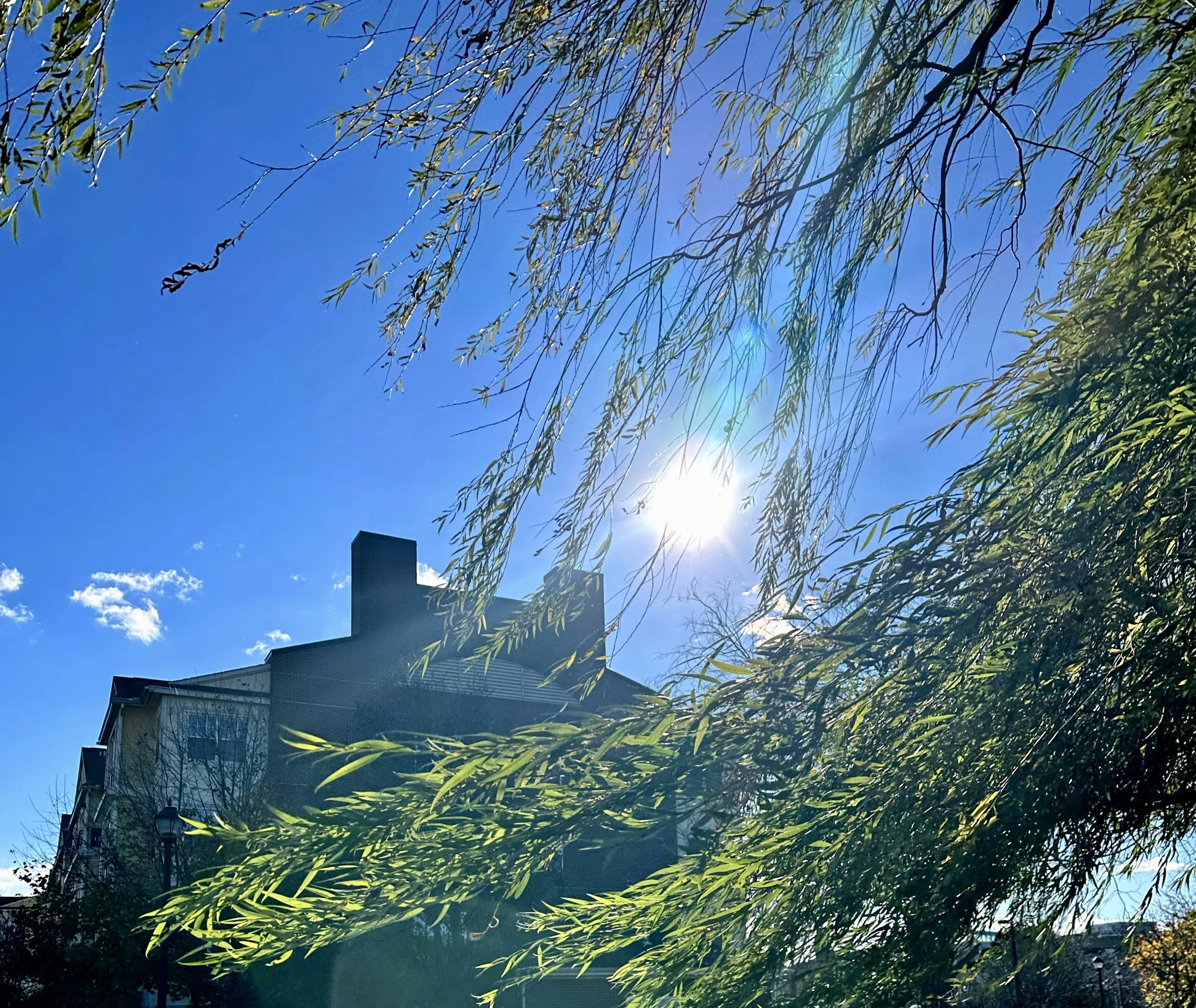 Our fall season has been warmer than usual and the willow tree didn’t get the message to lose its leaves. It’s quite beautiful on this clear, cold day.