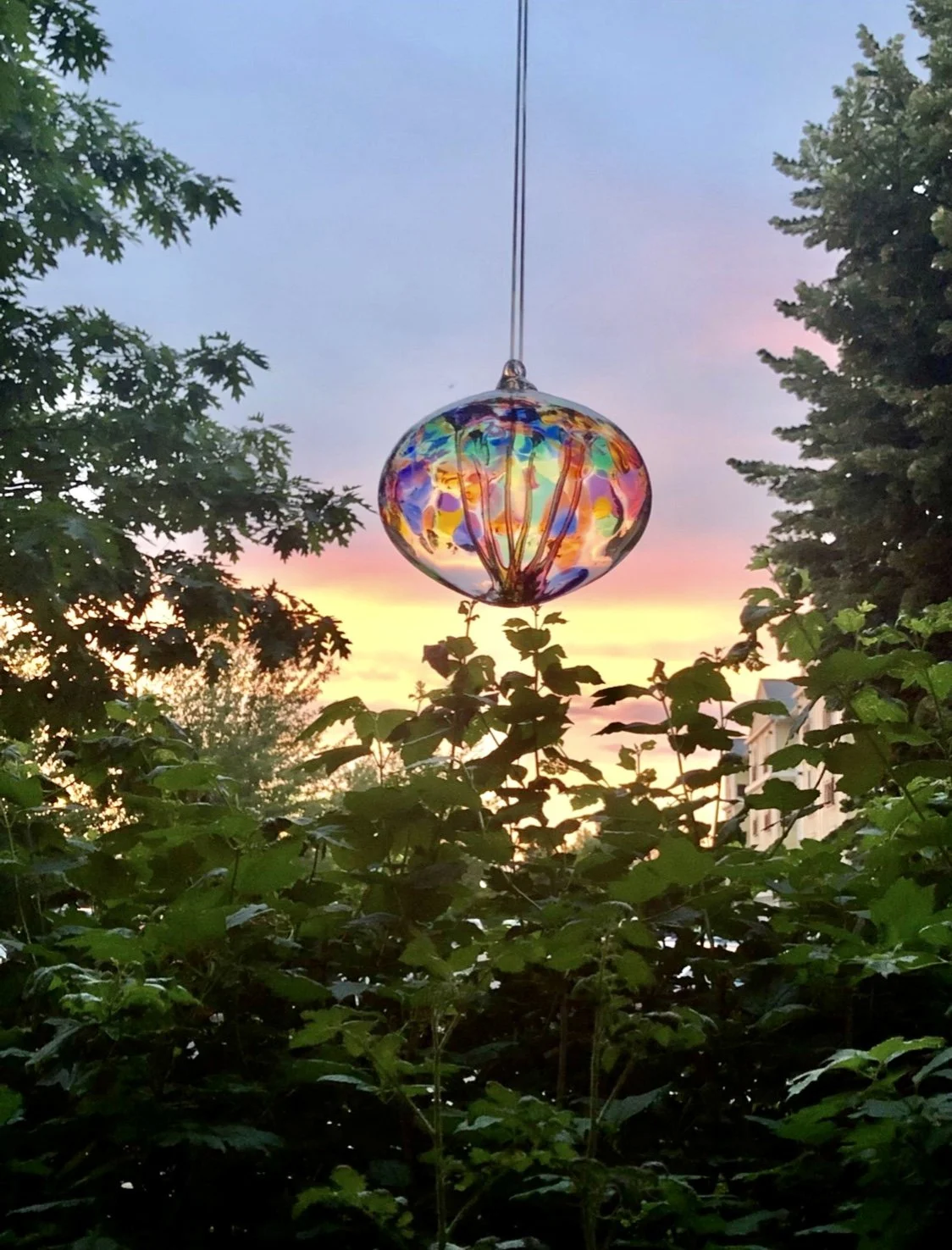 You might have noticed I enjoy the colors of the sky changing through the design of my “tree of rainbows” orb. It is quite magical. For a time, I am drawn into the beauty, having no control of the creation and feeling no need to assist. Life is doing its thing. I sit back and let go.