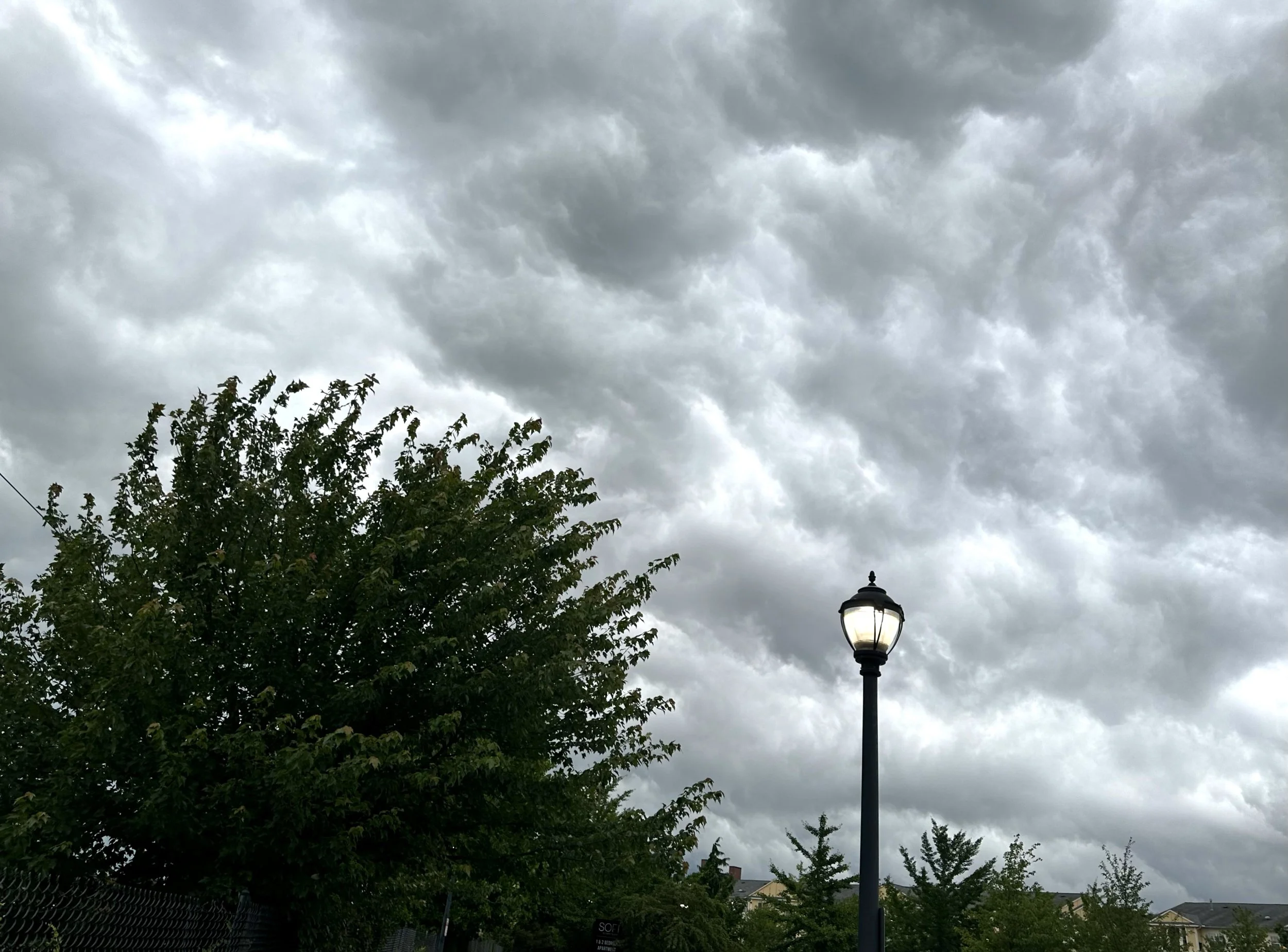 Last evening the skies were filled with clouds, making the picture appear black and white. It was like being under a canopy.