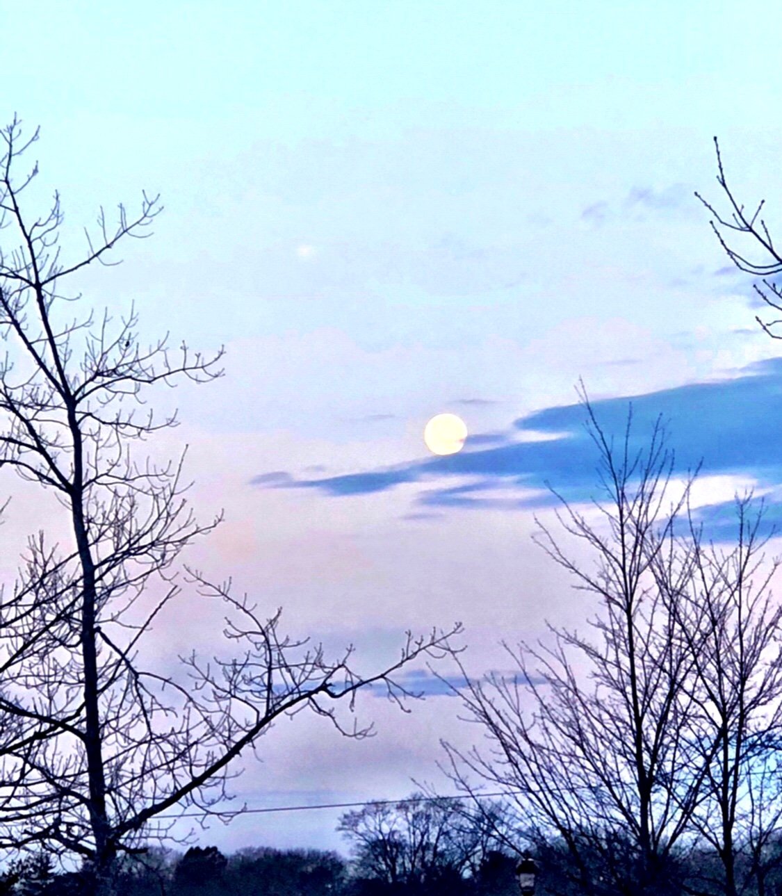 Daybreak. A serene moment in time. The moon, not ready to relinquish the day to the sun just yet. Hanging on to another bit of slumber while keeping plans at bay.