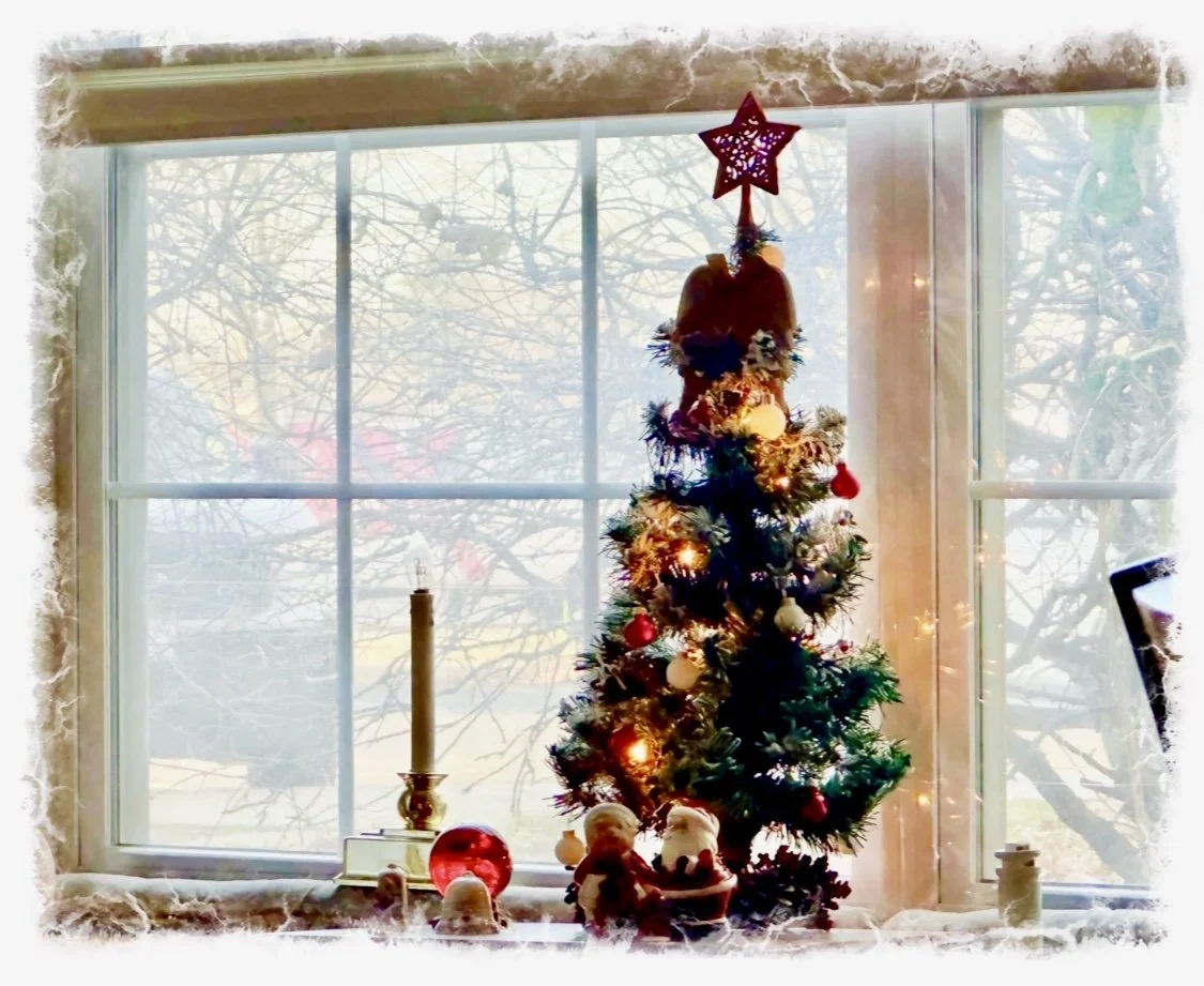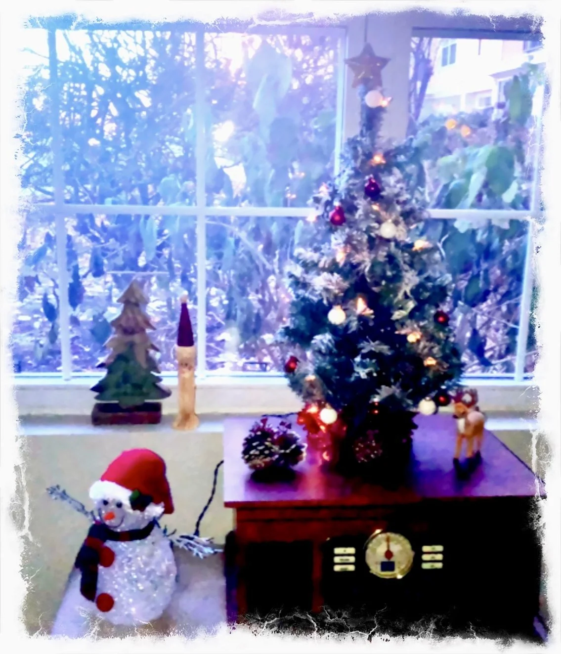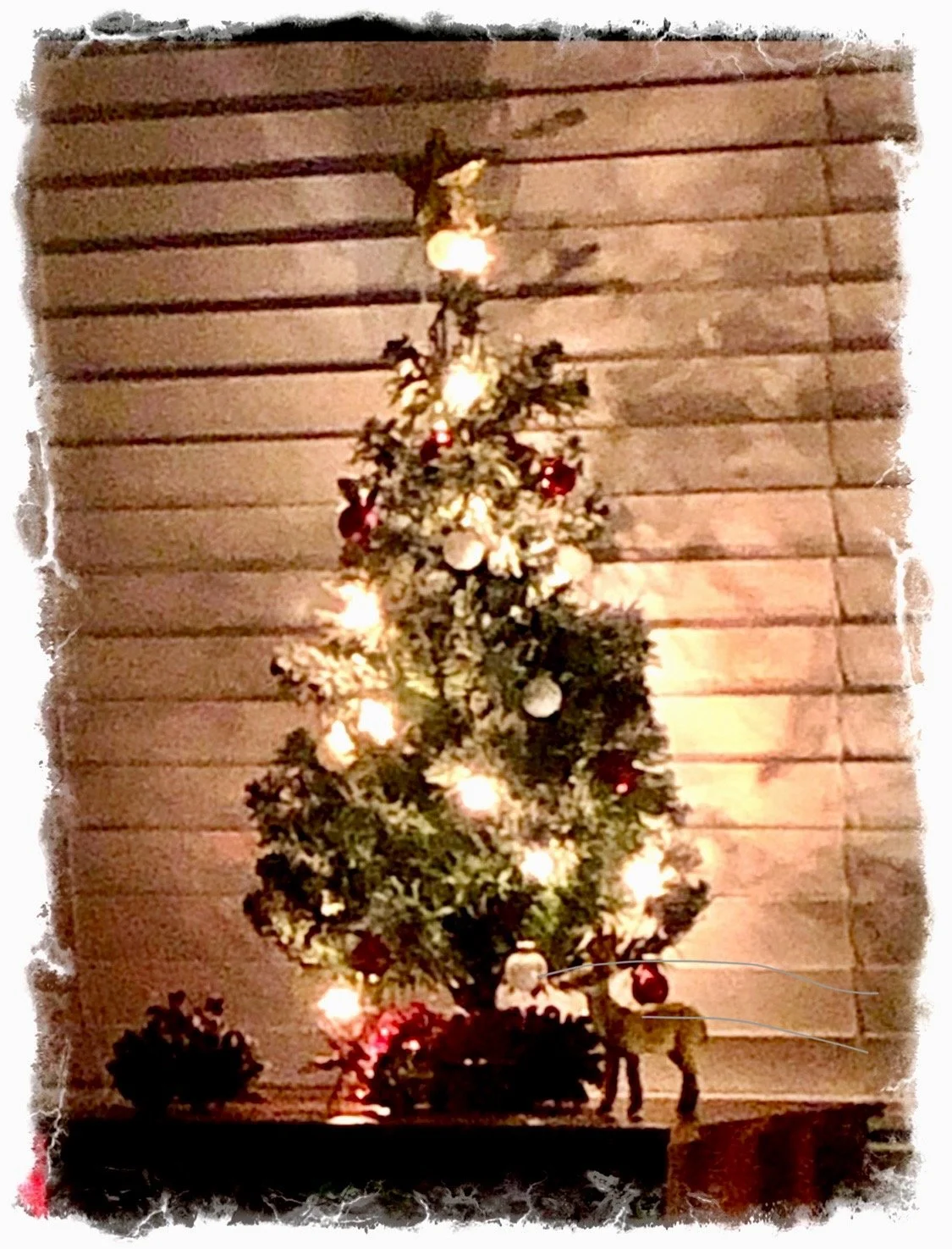 This is John’s‘s classic tree. Green with red and white ornaments and white lights. It has light snow effects on the branches. It was always the first one we would put up. I’d bring it out and he would carefully take the time to rearrange the branches and fix any of the bulbs that had fallen during storage. It was the beginning of our Christmas celebration and still is for me today. ❤️❤️