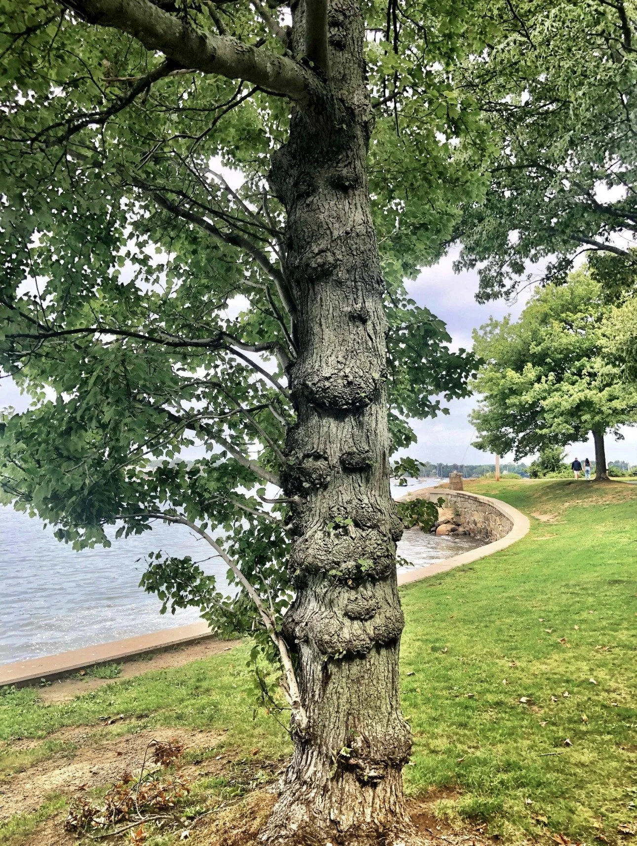 A tree from this past summer with multiple burls caught my eye. Interestingly, burls are formed as a result of stress to the tree area. It could be insect, injury, a multiple of reasons. They are natures way of healing the area and protecting the tree. Not much different from a scar on us, left behind as proof that we survived.