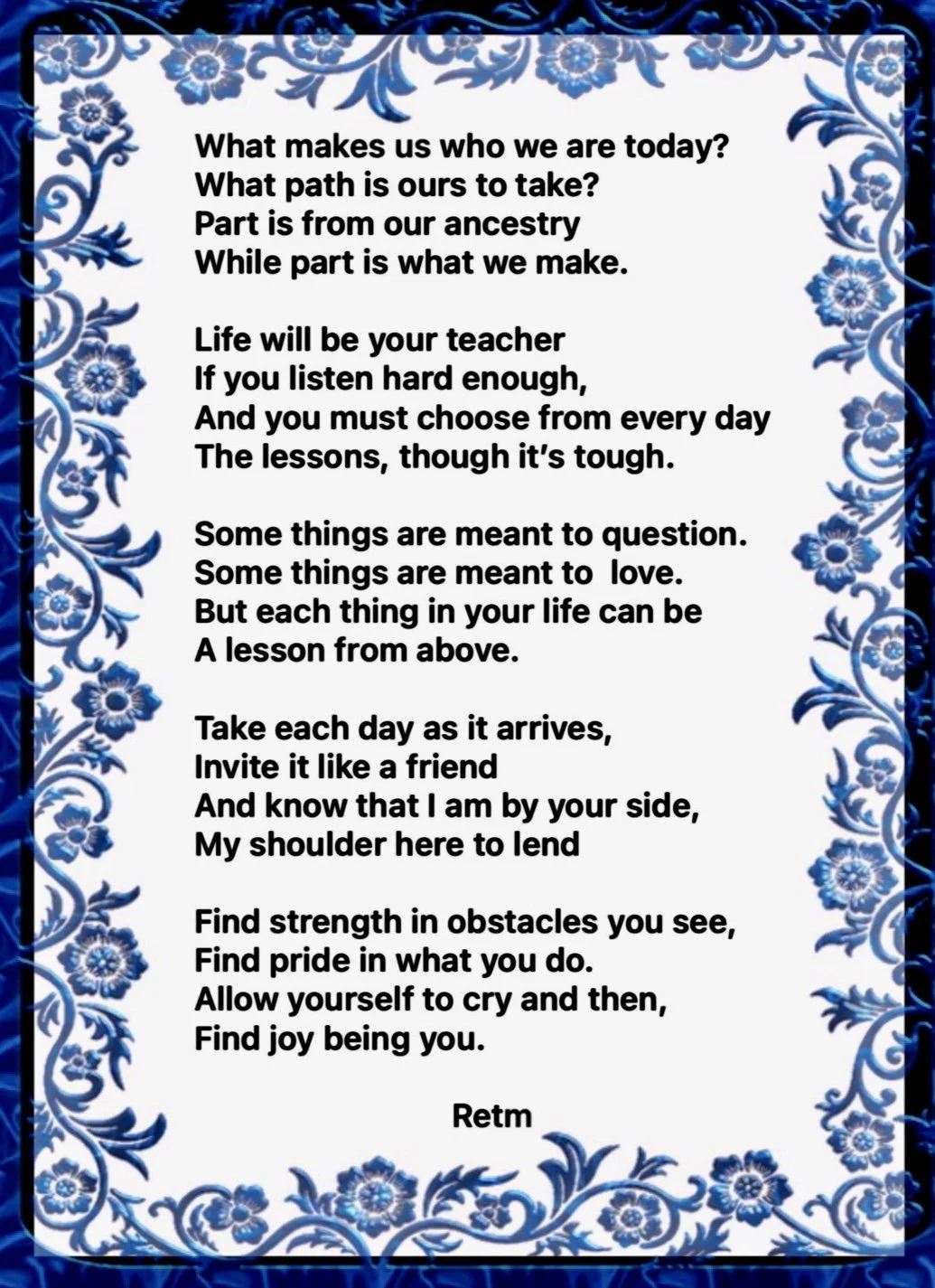 One of my Recovery Through Poetry poems I wrote after losing my husband, John. I found it healing. I hope you do, also.
